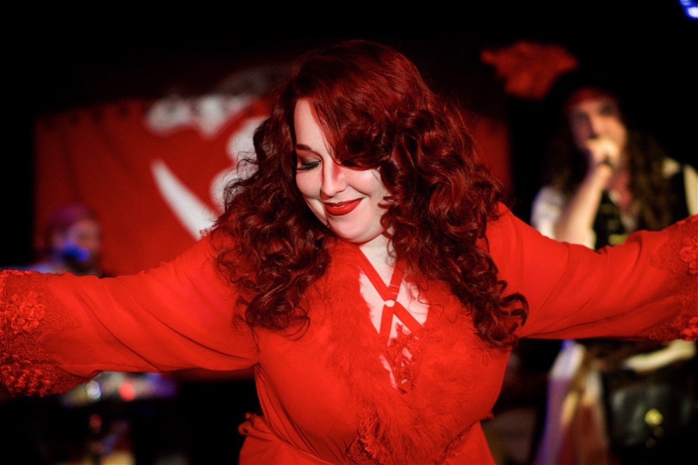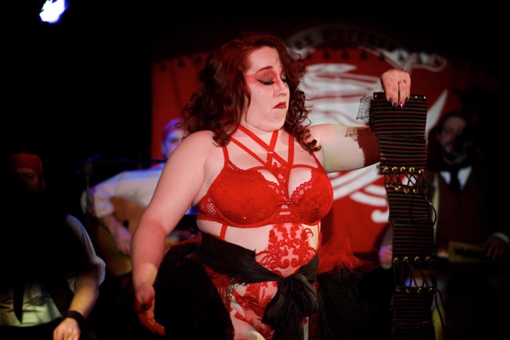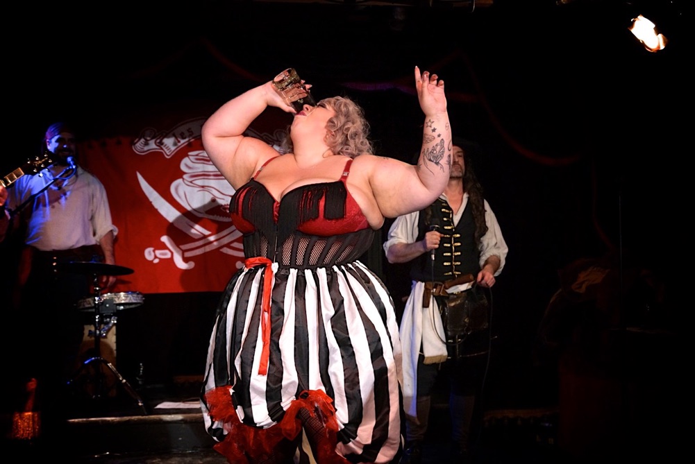 Voici la 4e édition Rated Arrr burlesque, accompagné des musiciens Les Mureines, produit par la célèbre burlesque Crimson Duchess, s'est déroulé au Wiggle Room à Montréal, offrant une soirée mémorable de performances burlesques vibrantes et captivantes.