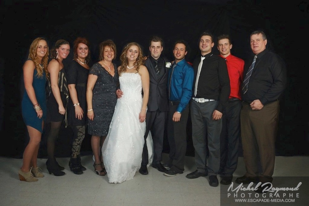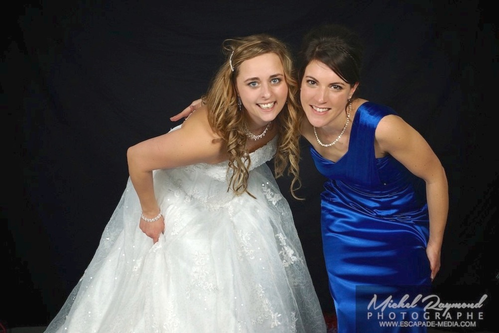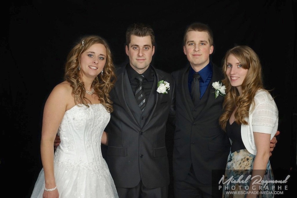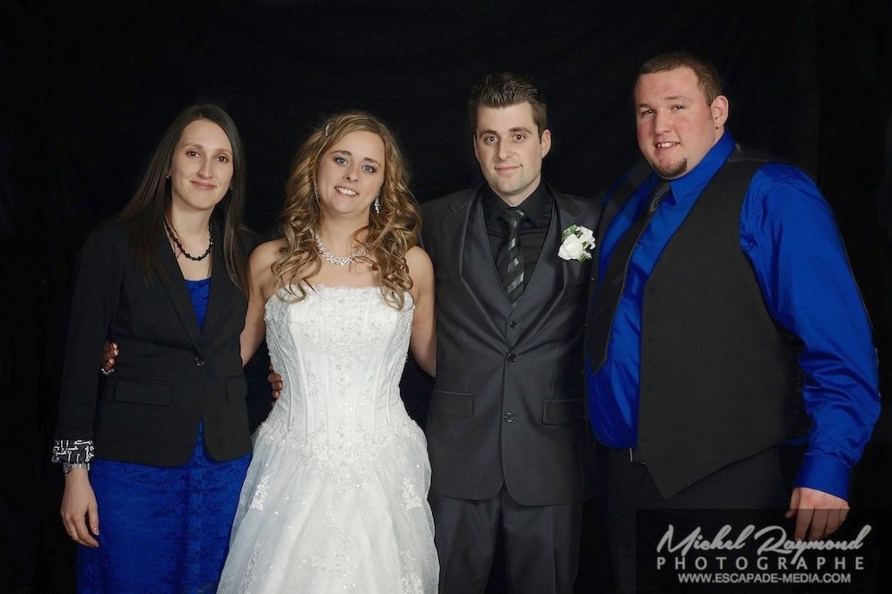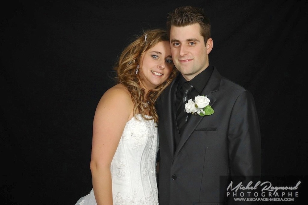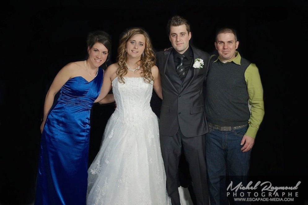 Photos studio de mariage lors des félicitations aux mariés de Kim et Amélie. Qui à eu lieu à Pohénégamook le 31 décembre au soir 2013. Pour leur mariage ils ont choisi également la station Photobooth. Pour les photographies félicitations aux mariés ce fait à l’entrée dans la salle de réception, le maître de la cérémonie appelle en premier lieux les parents, femmes et hommes d’honneur ainsi de suite. Pour quelques raisons si nous avons pas le temps de photographier tous les invités le reste ce fera dans la soirée. Ce fut un succès sur toutes la ligne. Des photographies de chacun des invités clairs et nets.