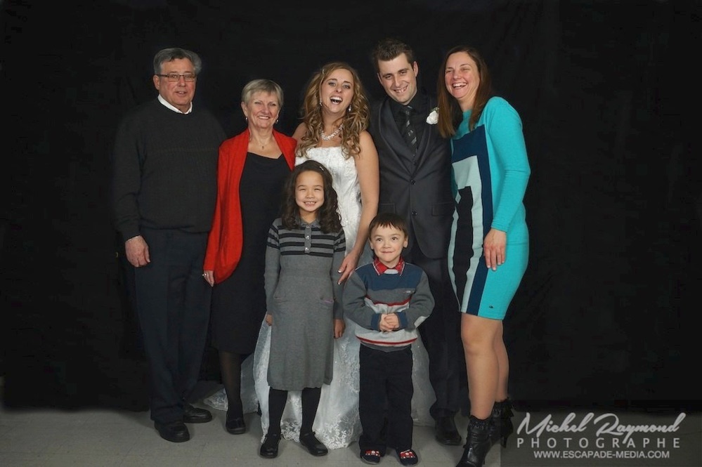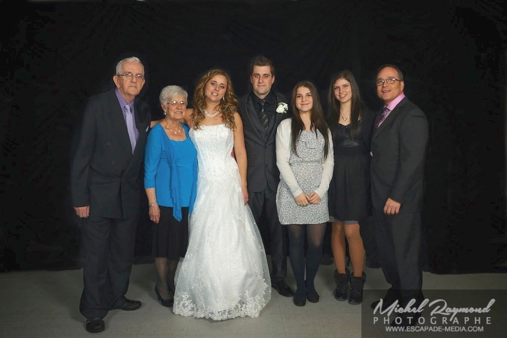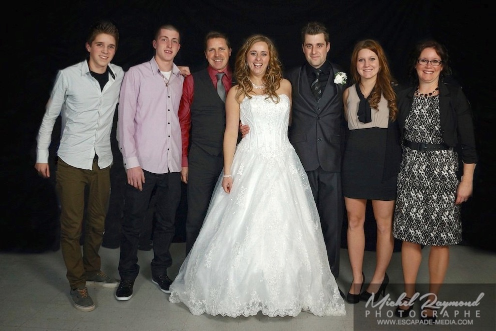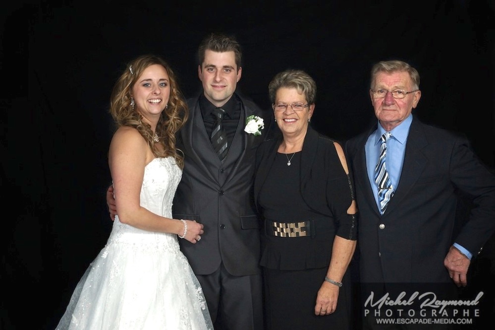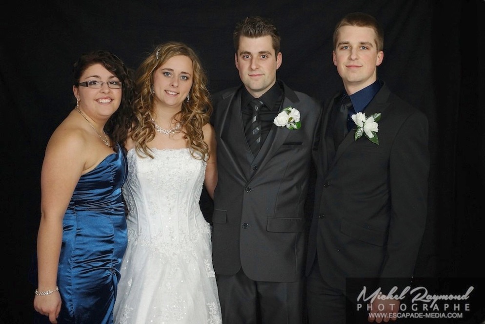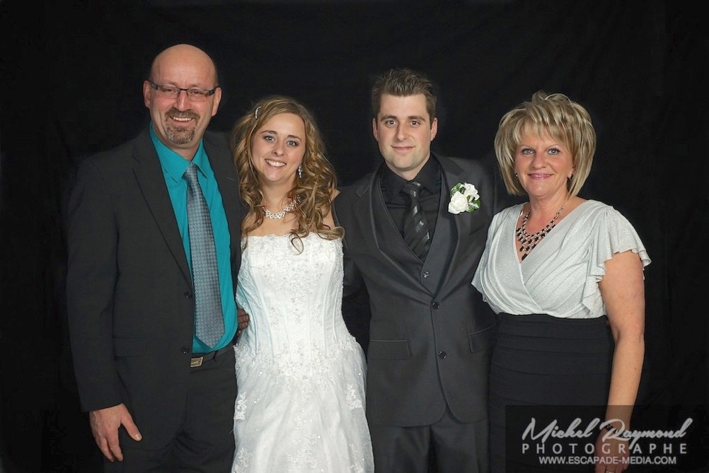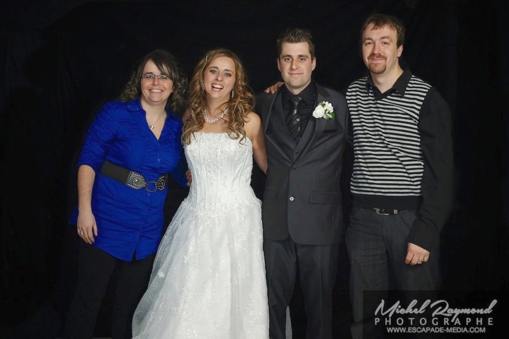 Photos studio de mariage lors des félicitations aux mariés de Kim et Amélie. Qui à eu lieu à Pohénégamook le 31 décembre au soir 2013. Pour leur mariage ils ont choisi également la station Photobooth. Pour les photographies félicitations aux mariés ce fait à l’entrée dans la salle de réception, le maître de la cérémonie appelle en premier lieux les parents, femmes et hommes d’honneur ainsi de suite. Pour quelques raisons si nous avons pas le temps de photographier tous les invités le reste ce fera dans la soirée. Ce fut un succès sur toutes la ligne. Des photographies de chacun des invités clairs et nets.